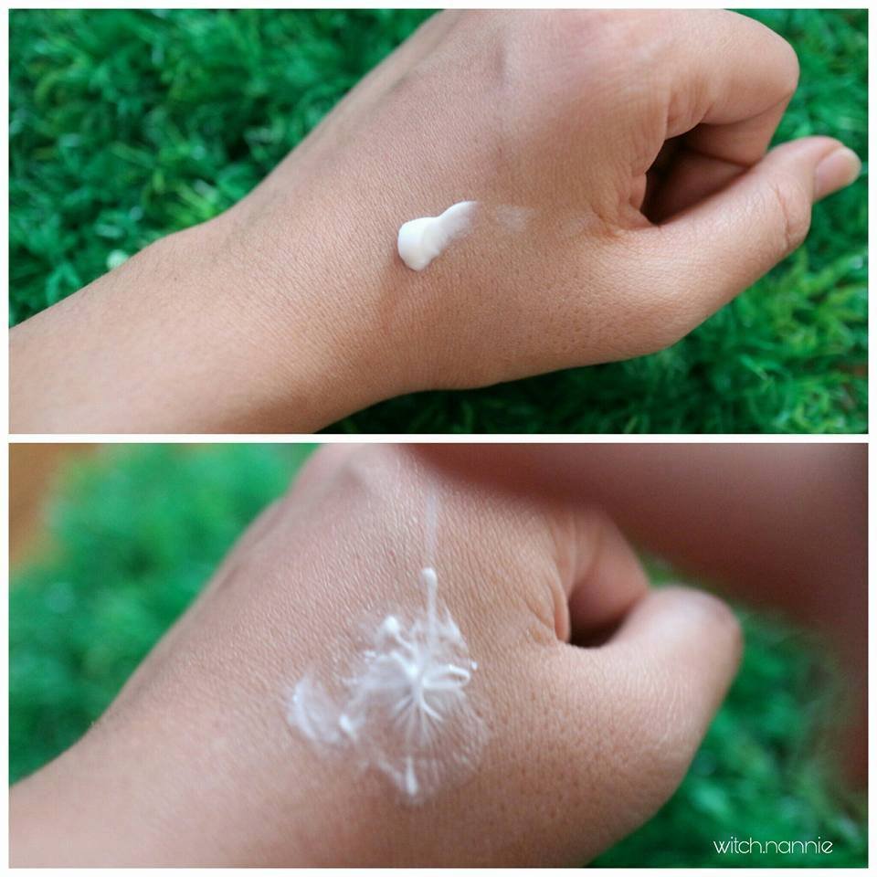 เนื้อครีมสีขาวทาง่ายค่ะ เเค่ทาวนๆก็ซึมลงผิวเเล้วค่ะ