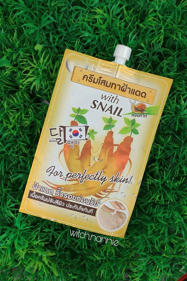 คือ ส่วนผสมของเค้าโสมเกาหลีและหอยทากสกัดที่มีสารกันแดดในตัว ออกแดดแล้วไม่ดำ