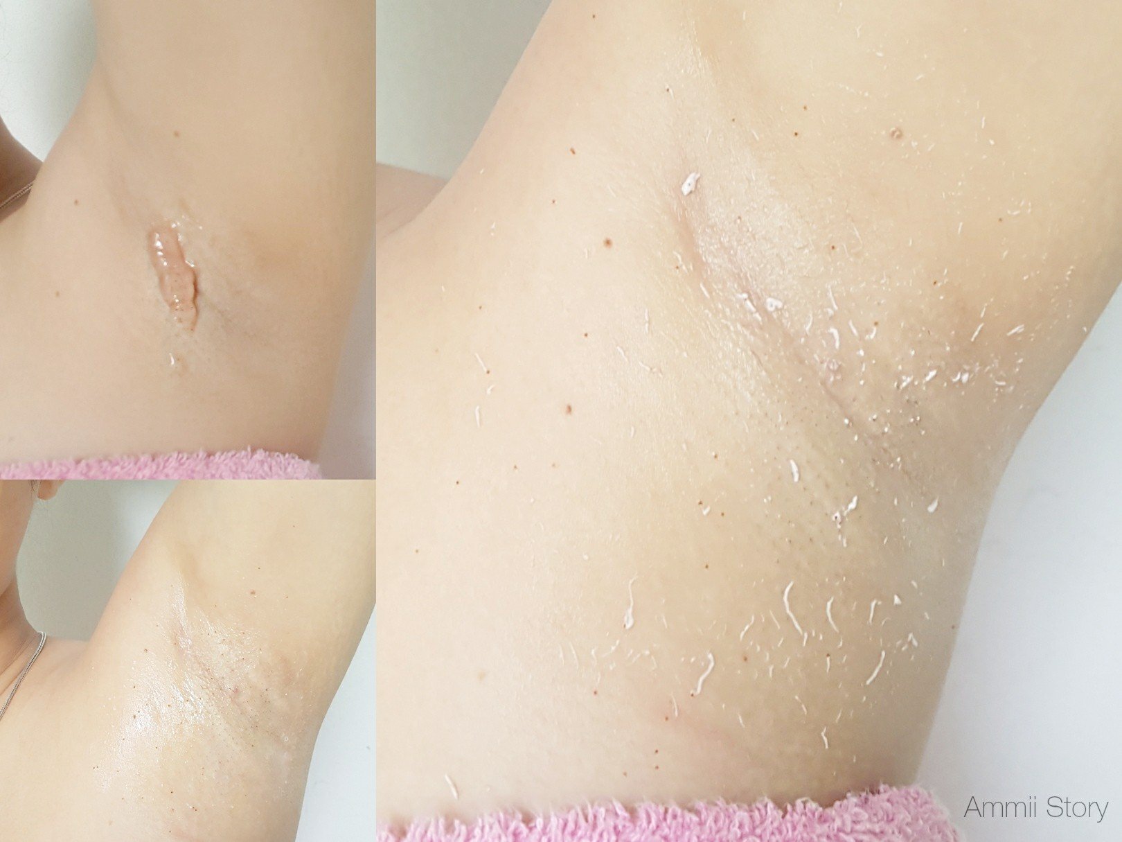 ก่อนการใช้ ผิวบริเวณจั๊กกะเเร้ของเเอมมีความหมองคล้ำระดับหนึ่ง อาจจะด้วยการเสียดสีของขอบเสื้อ...