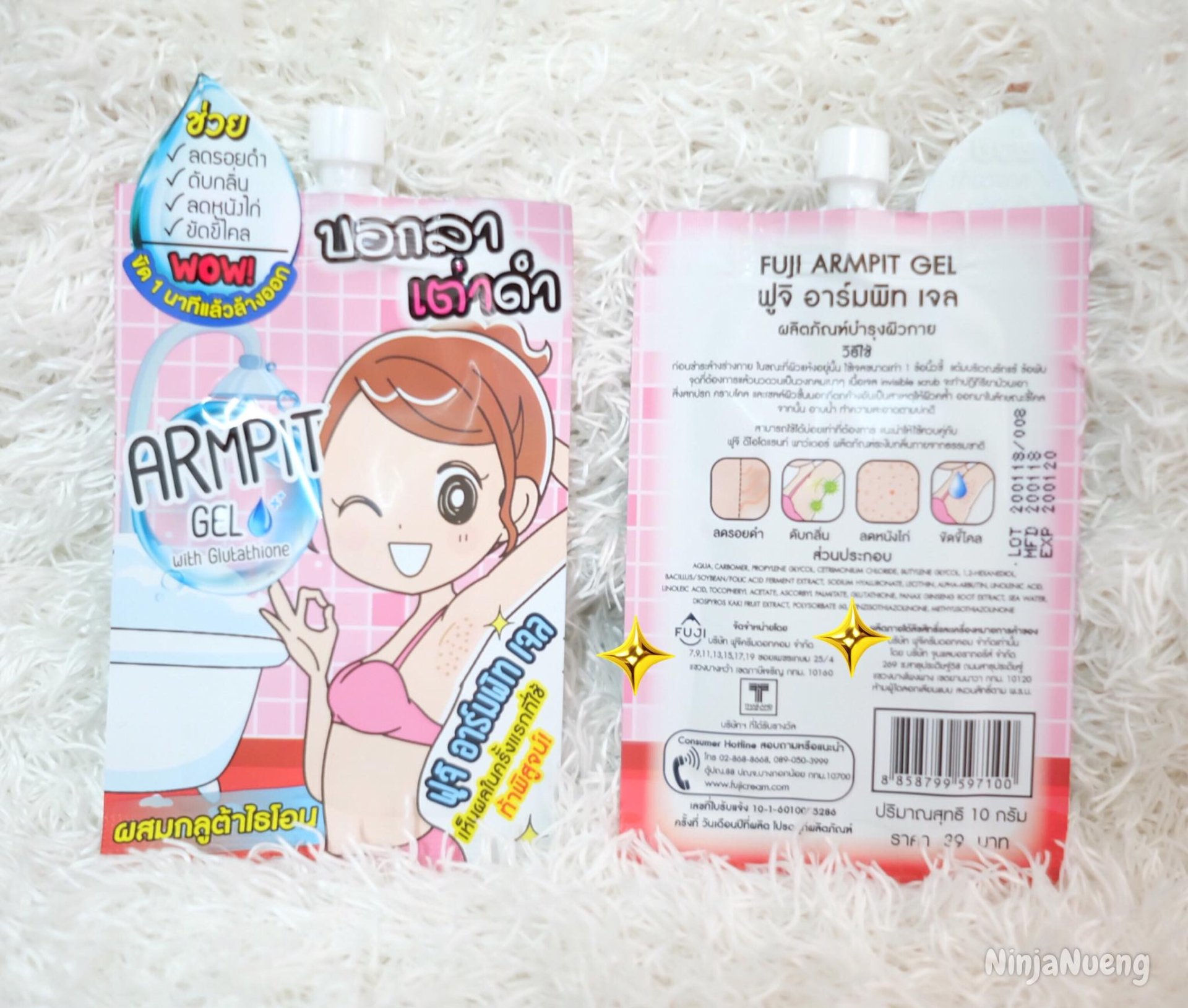 ซองสีชมพู คือตัวเจลขัดรักแร้ Fuji Armpit Gel (ฟูจิ อาร์มพิท เจล)